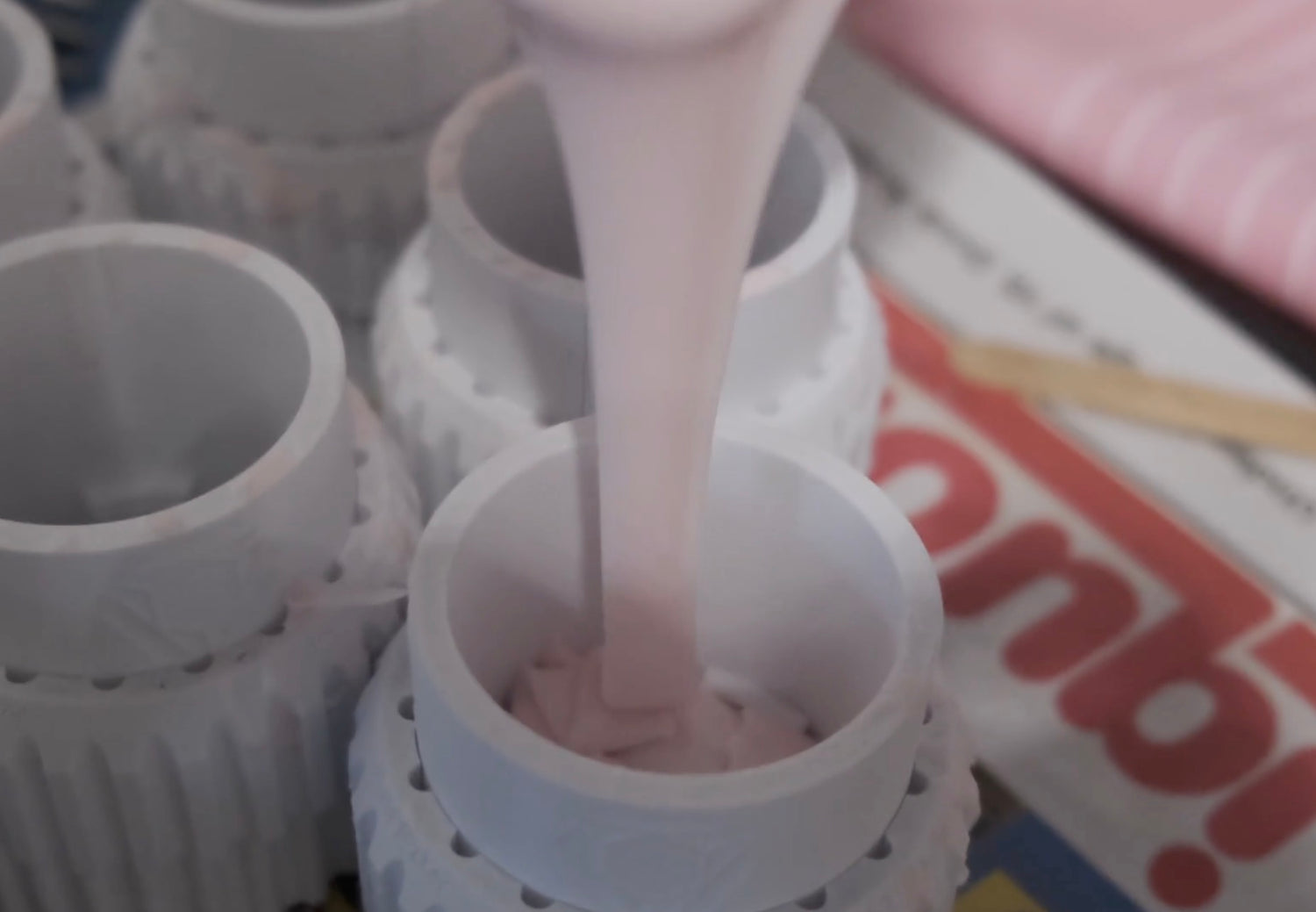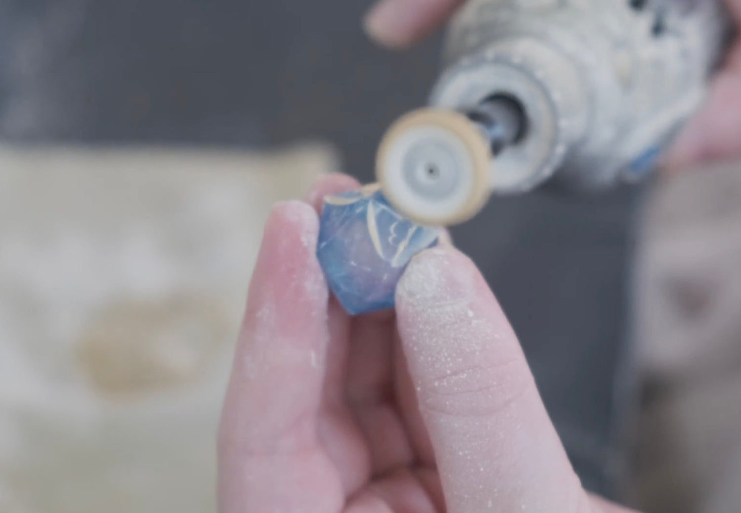 Because the 3D-printed dice are fragile, each piece undergoes meticulous sanding and polishing to achieve a smooth, shiny surface. These perfected prints are then used to create silicone moulds, which will shape the final product.
