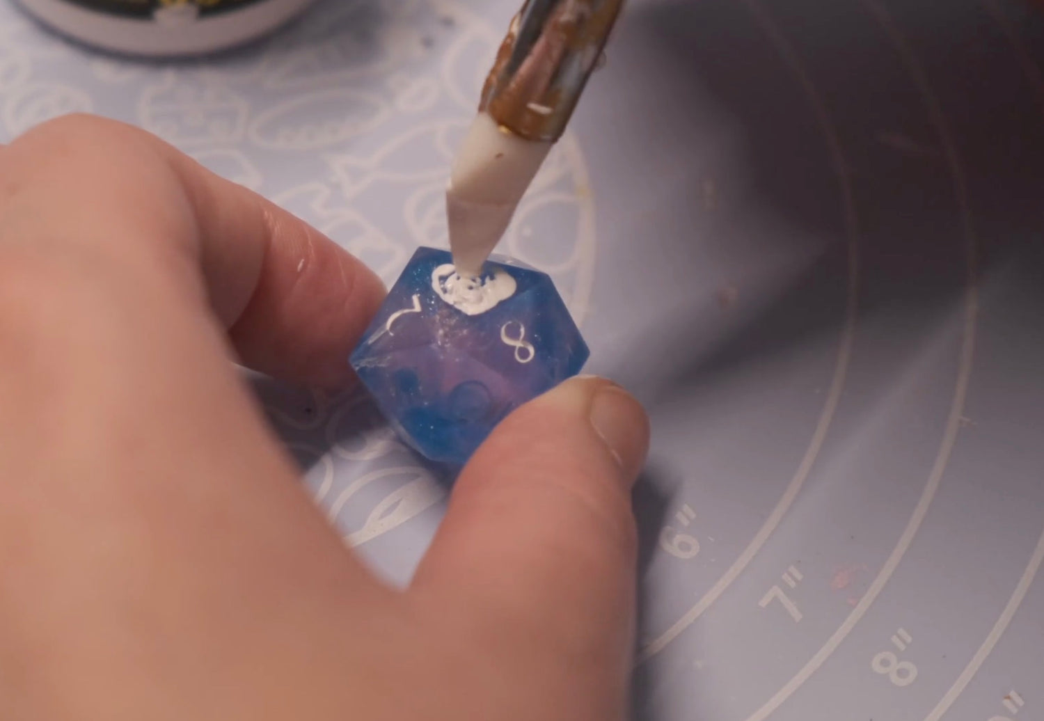 Finally, we paint the numbers for clarity and aesthetic appeal. Each die is then thoroughly cleaned to restore its glossy finish, ensuring they look as spectacular as they roll.